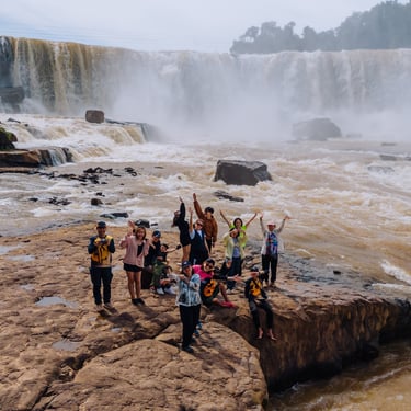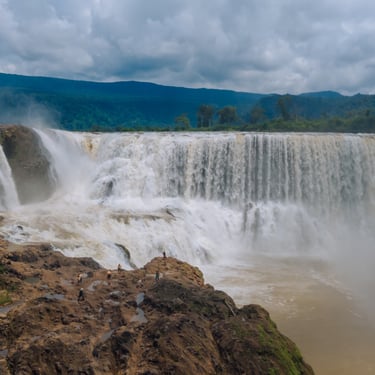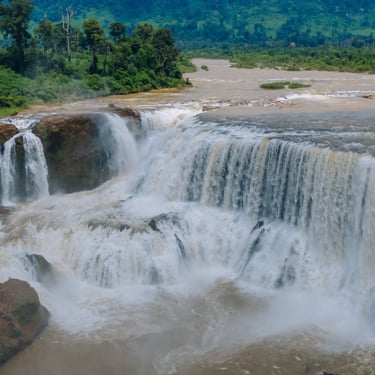 Xeponglai Waterfall is 130 m wide, and has two small falls with the left one is 20 m high and the right one is around 35-40 m tall. The waterfall can be reached all year round by car, motorcycle and bicycle. There are many attractions along the road heading to the waterfall and it is up to you to have a short stop or just straight ahead.