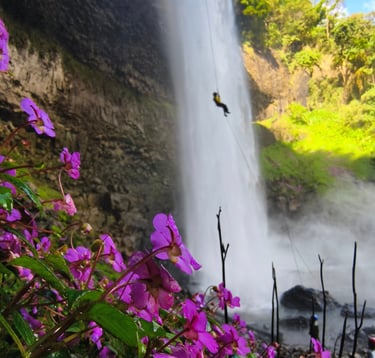 The Tadtayisuea Waterfall Canyoning Tour by Muan Tour Company is a one-day adventure activity that involves canyoning from heights ranging between 30 meters to 70 meters, descending into the natural beauty and waterfalls below the Taik Seo Waterfall. It is designed as a comfortable journey suitable for travelers with limited time who want to experience an exciting, adventurous activity.